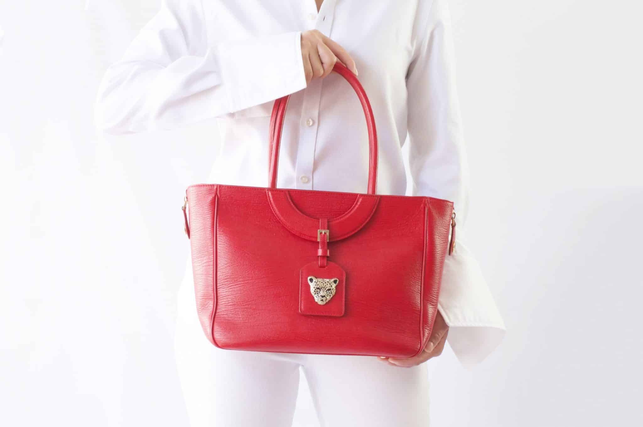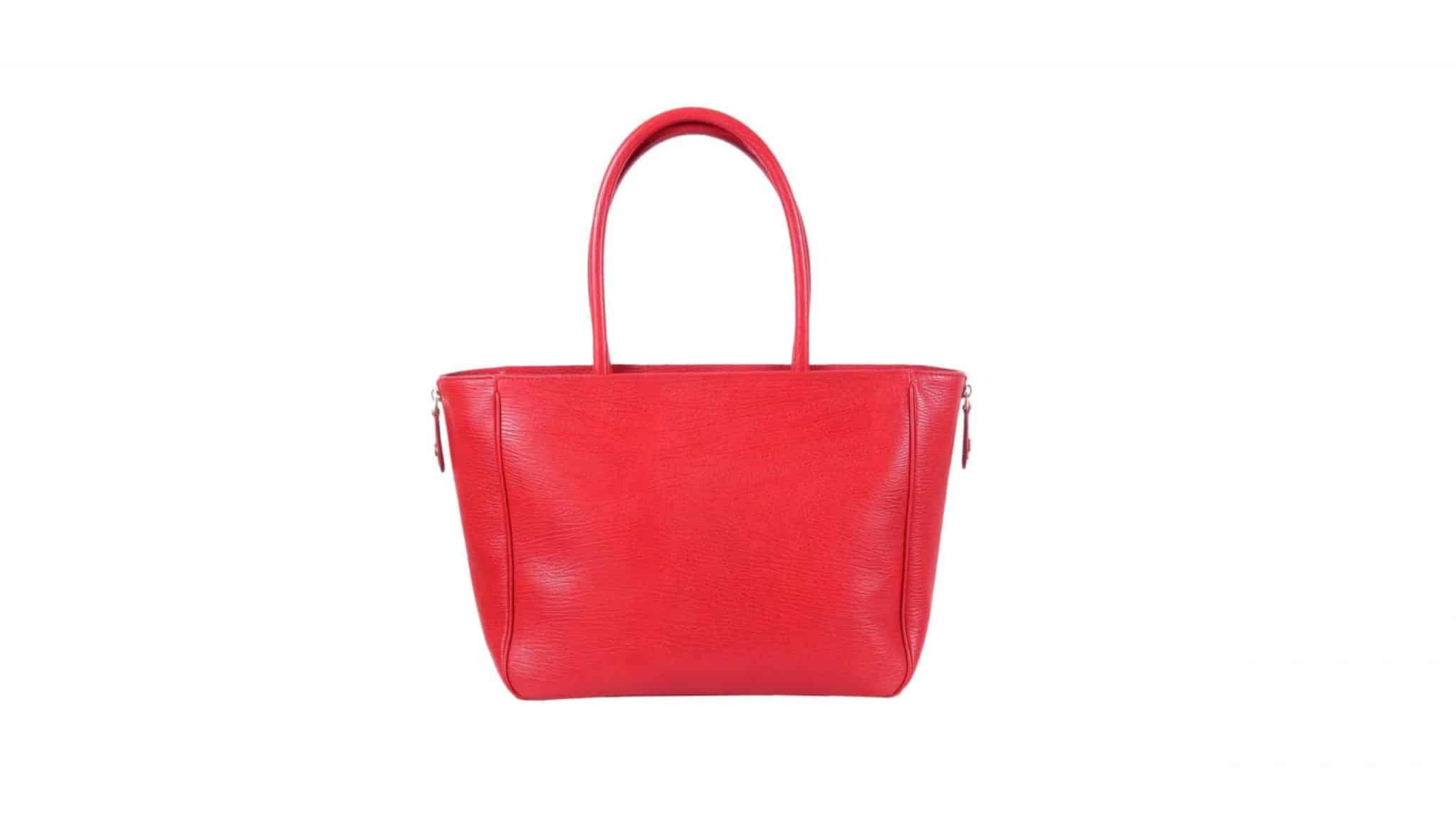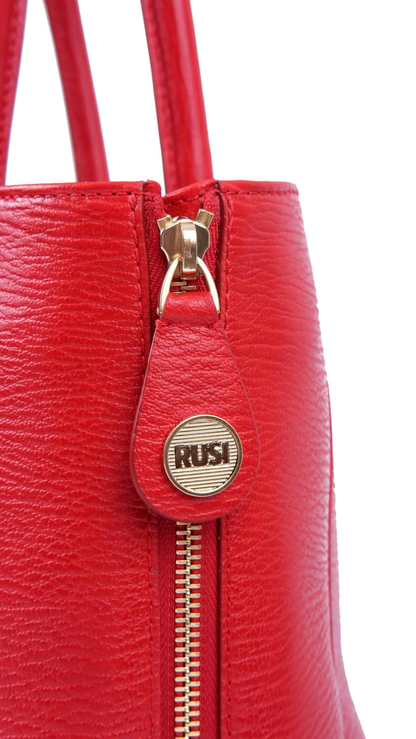 Red Leather Tote Bag with Zip closure.