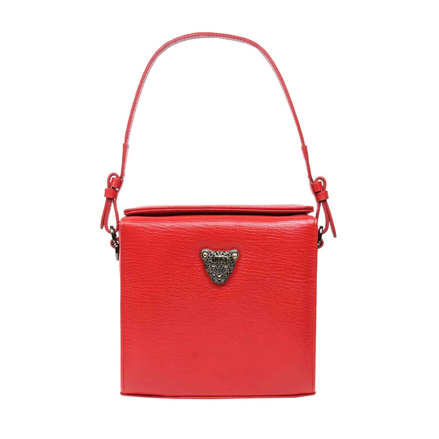 RusiDesigns Signature Boxy bag called Micro17. This Red leather Boxy bag comes with 2 interchangeable straps. Unique minimalistic magnet closure.