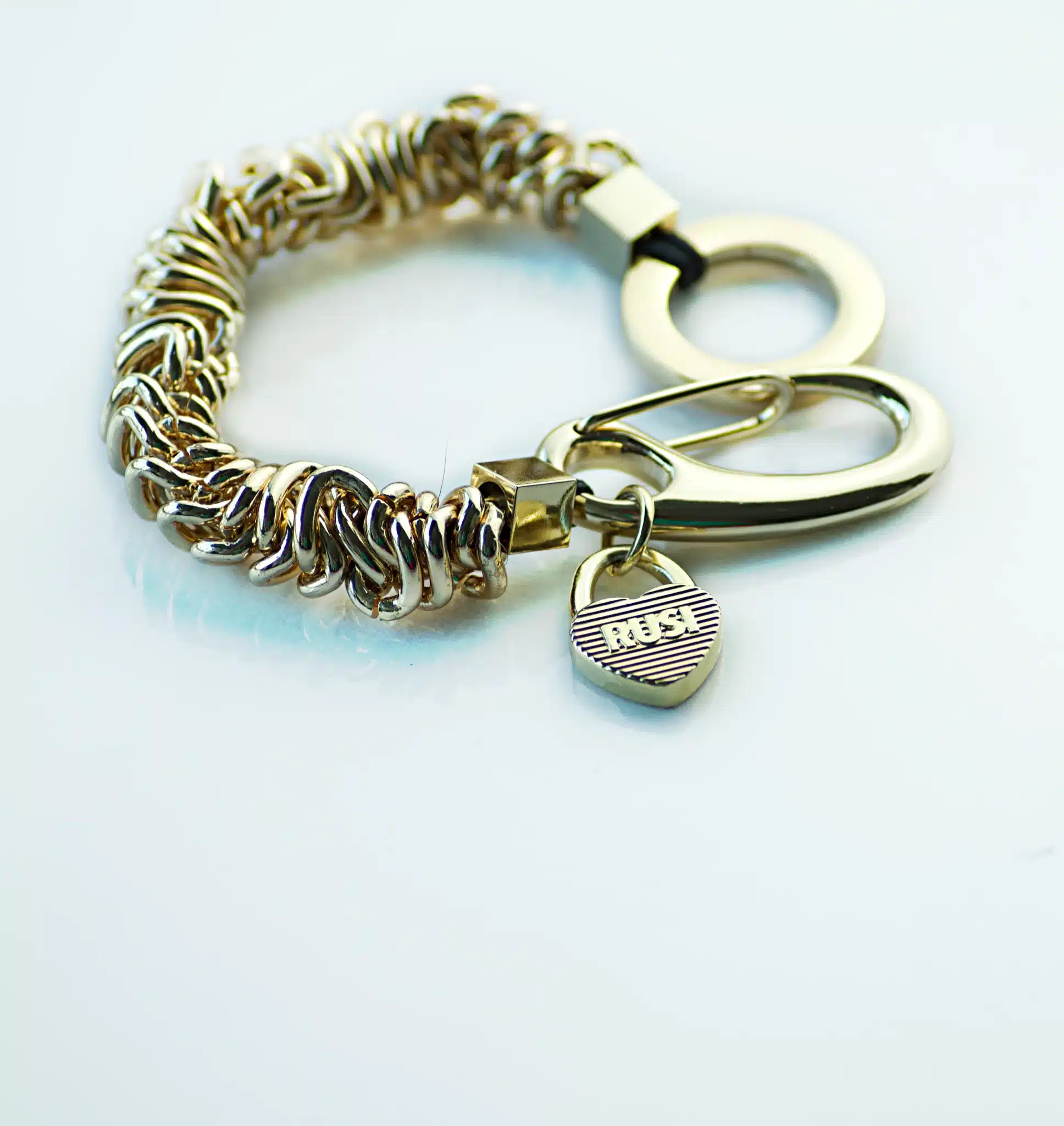 Featuring our signature clasp with gold heart Rusi logo.