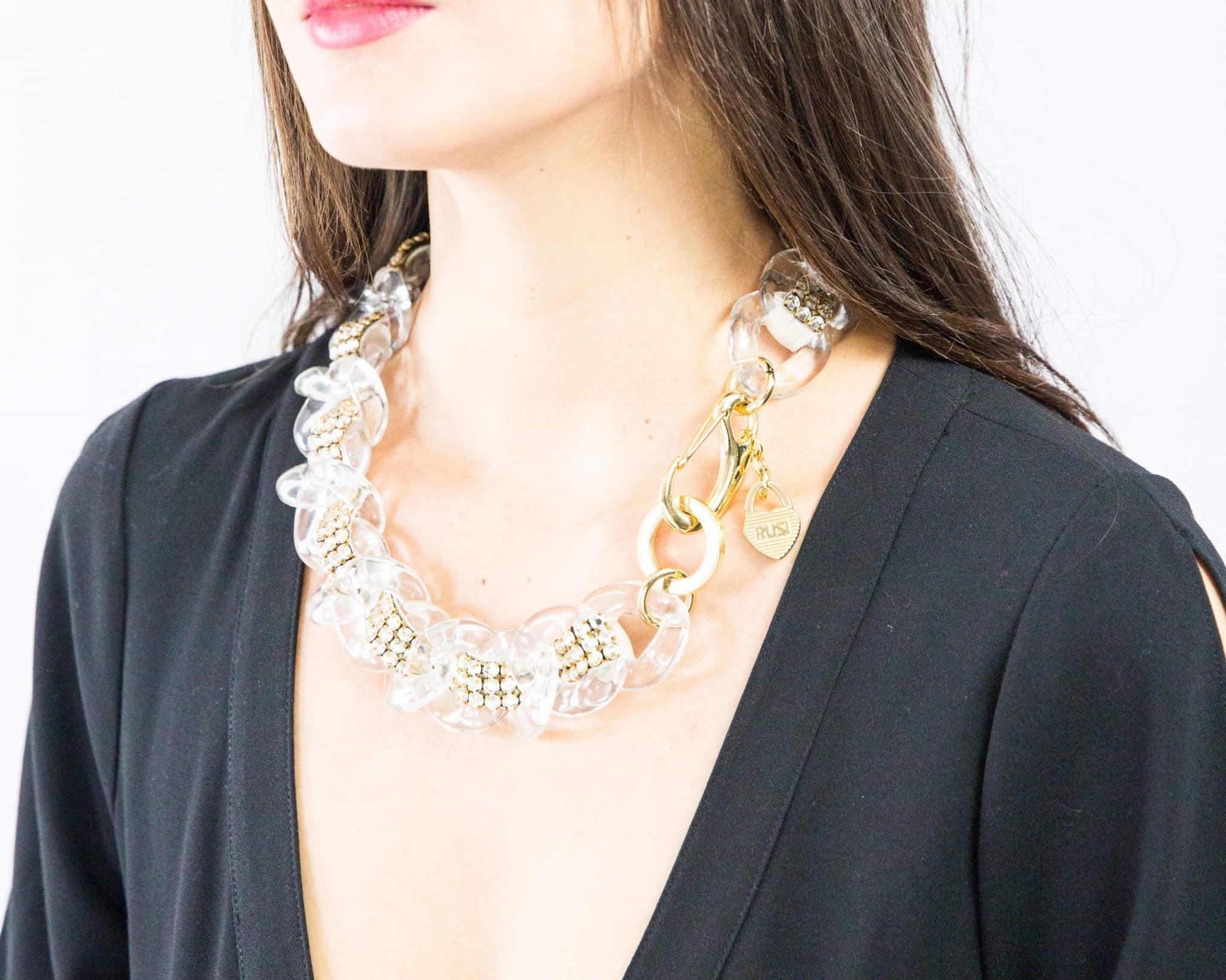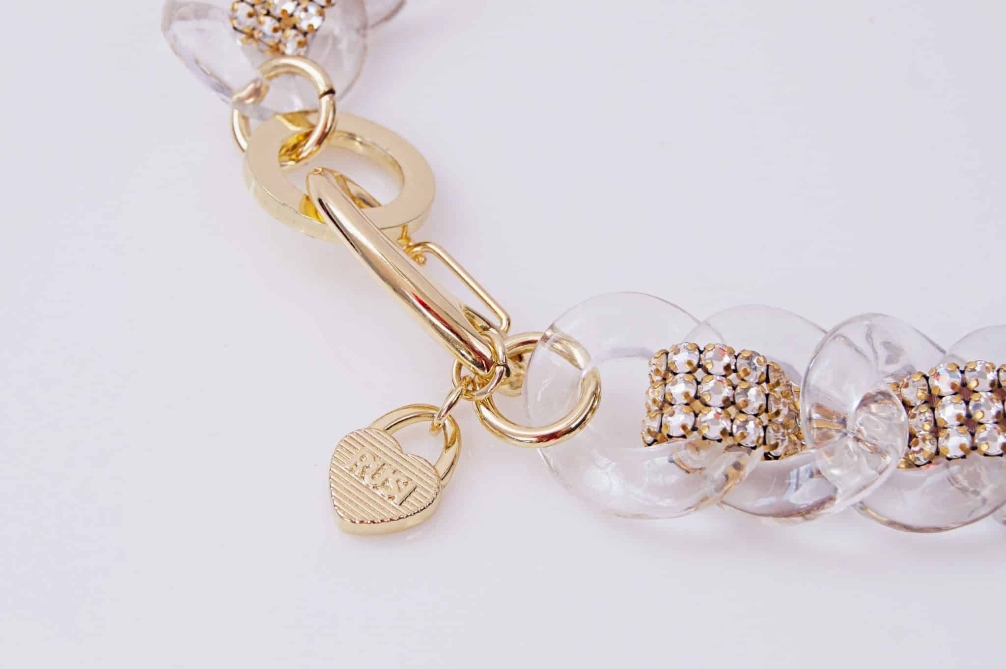 Statement fashion jewellery piece with signature RUSI clasp and heart logo.