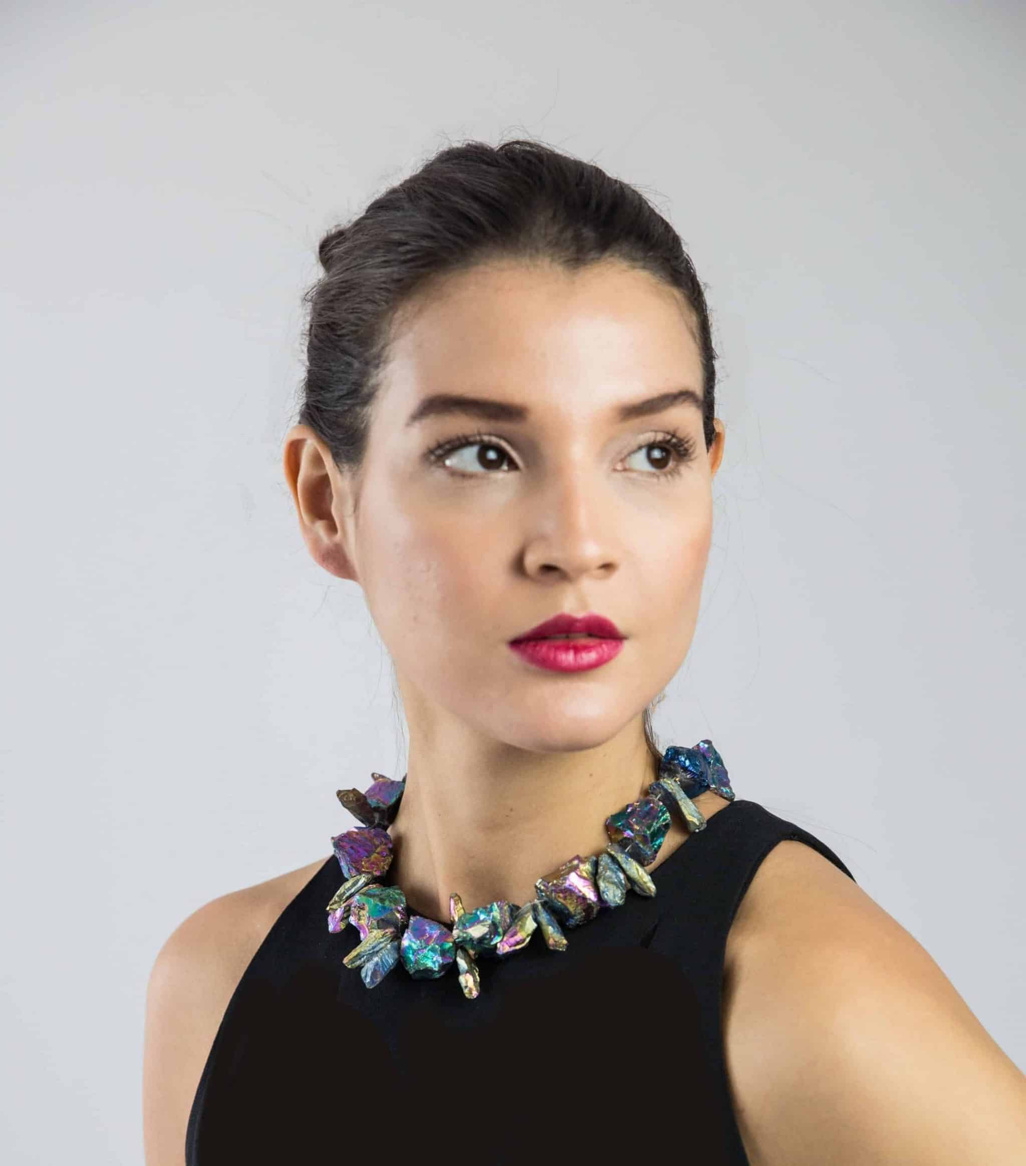 RusiDesigns Statement necklace in iridescent tones with pink and purple tones.  Each and every piece is unique.