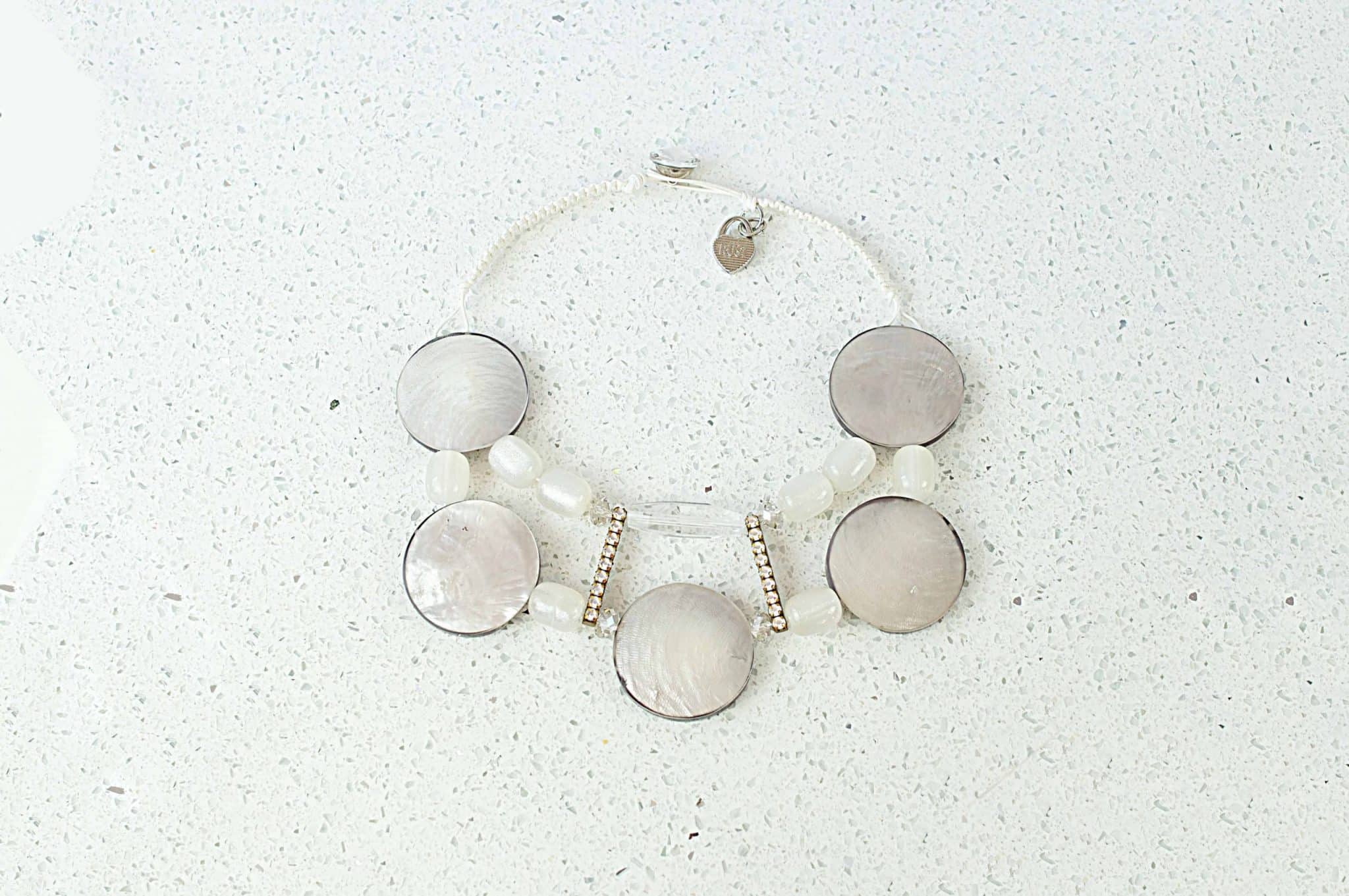RusiDesigns Statement necklace in White mother of Pearl and Crystals.